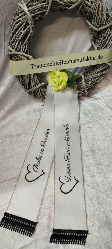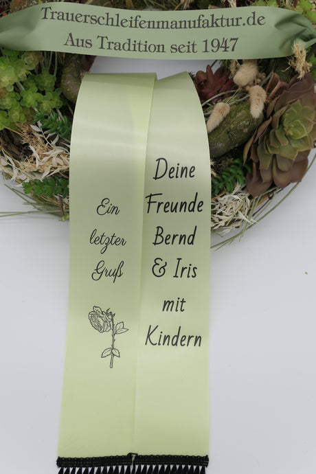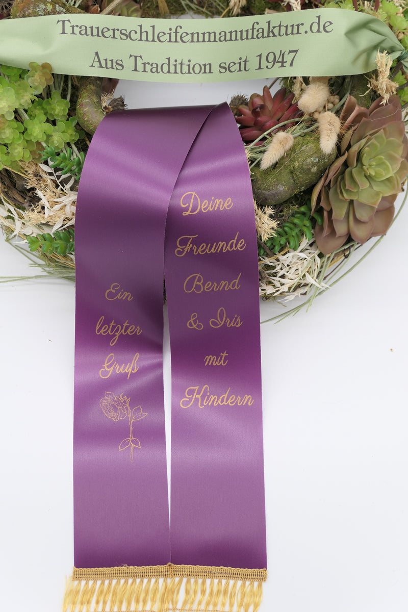 Trauerschleifen individuell gestalten bedeutet, eine persönliche Botschaft stilvoll zum Ausdruck zu bringen. Ob klassisch, modern oder mit besonderen Symbolen – jede Kranzschleife wird nach Wunsch gefertigt und sorgt für einen würdevollen letzten Gruß.