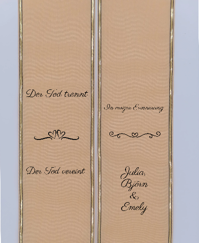 Die dargestellten Schleifen- und Schriftfarben können von den tatsächlichen Farben abweichen.